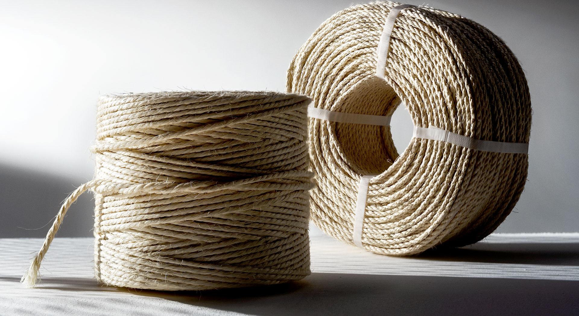This segment includes TWINES and ROPES made of natural material such as SISAL, LINEN, COTTON etc., used both in the dairy sector and in meat processing. The range of diameters currently on sale is very wide and ranges from the smallest such as title 2/2, to the largest such as title 6 mm. The color is natural.